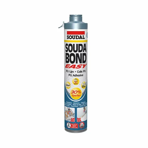 Soudabond Easy is a ready-to-use, single component, self-expanding polyurethane adhesive for clean, efficient and economical permanent bonding of insulation panels and plasterboard in building and construction.
